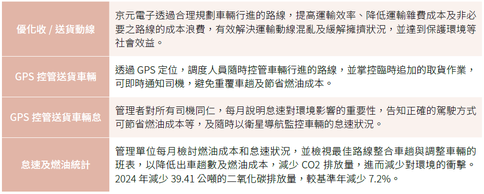 京元集團於2022年因首年完成集團之溫室氣體盤查,故改變基準年為2022年,目標於2030年相較基準年減少15%排放量,我們採取以下的行動措施,並定期追蹤成果績效: